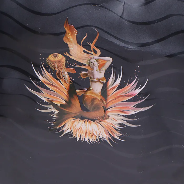 Раньше металлический блеск и гладкая фактура часто ассоциировались с горячим тиснением фольгой. Однако в этой сумке для покупок для одежды новаторски используется процесс печати и тиснения, заменяющий традиционное горячее тиснение фольгой, чтобы создать новый визуальный и тактильный опыт. Печать и тиснение позволяют получить больше цветовых градаций. Клиенты могут свободно настраивать цвета печати, матовую или глянцевую поверхность, эффекты прозрачности или градиента, в отличие от традиционного горячего тиснения фольгой, которое ограничивается определенными видами золотой, серебряной, медной или цветной фольги. Печать и тиснение позволяют создавать многоцветные комбинации. Процесс тиснения также придает тексту, логотипам или узорам трехмерный эффект, повышая интерактивность упаковки.